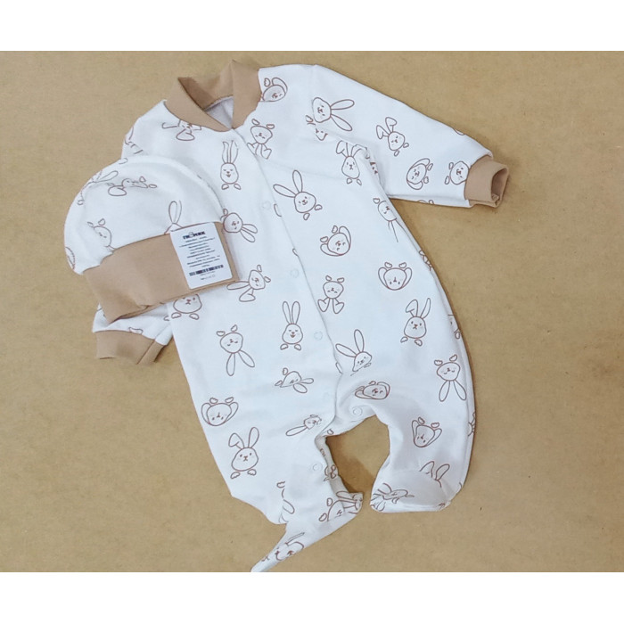 Чоловічок та шапочка Зайчик Бежевий (Футер - з начосом) 62 (3-6міс)