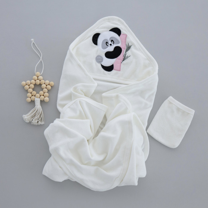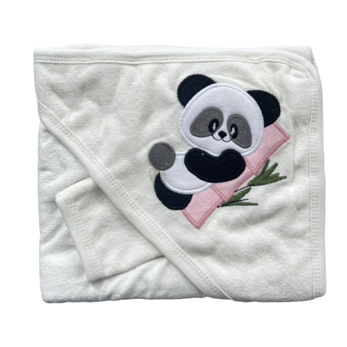 Дитячий рушник з кутиком махровий Панда Рожевий 90/85
