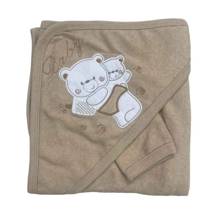 Дитячий рушник з кутиком махровий Ведмедики Бежевий 90/85