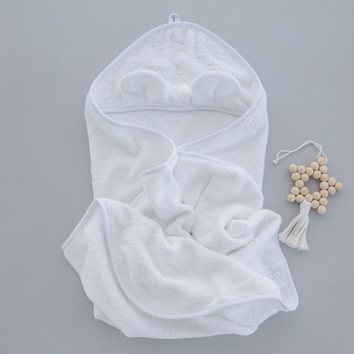 Дитячий рушник з кутиком та вушками махровий Білий 90/80