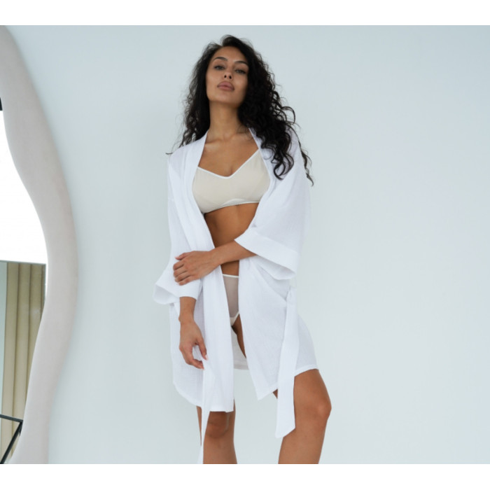 Халат мусліновий Білий L/XL (ОГ 100-110, ОС 105-115)