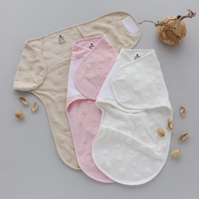 Коконпелюшка на липучці Сердечка Молочний (Інтерлок) 56-62 (0-3міс)