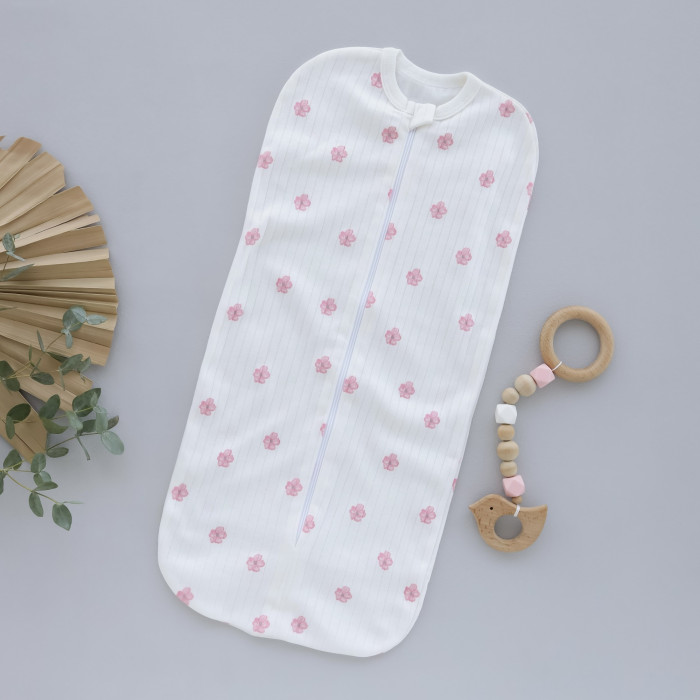 Коконпелюшка на змійці Квіти Рожевий (Рубчик) 56 (0-3міс)