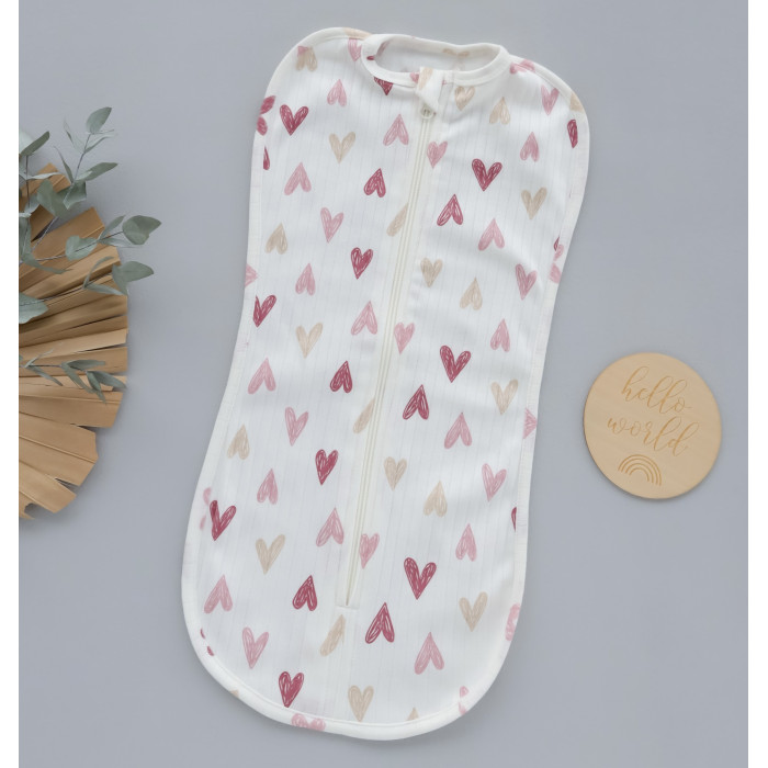 Коконпелюшка на змійці Сердечка Рожевий (Рубчик) 56 (0-1міс)