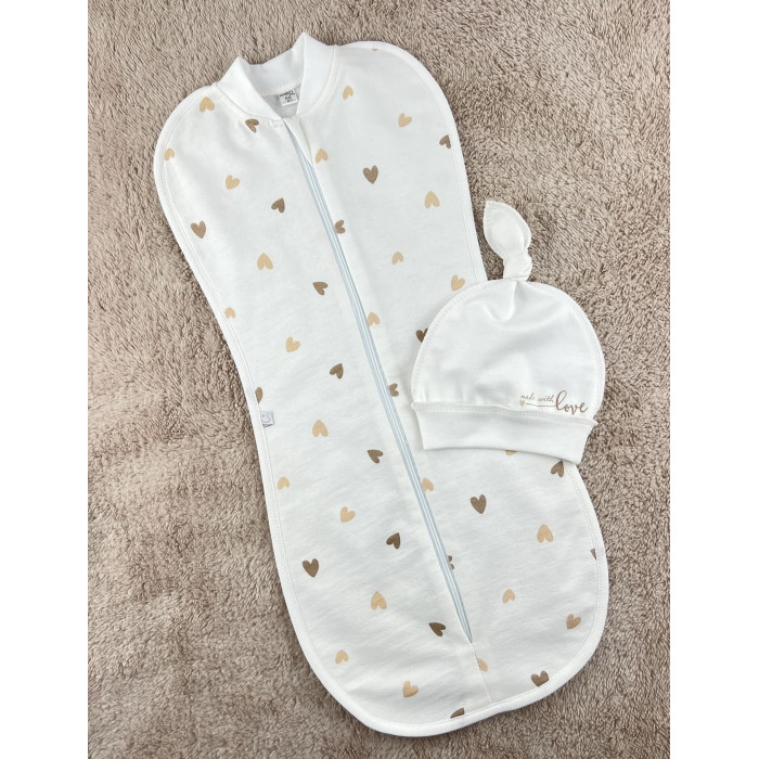 Коконпелюшка на змійці з шапочкою Сердечка Бежевий (Футер - з начосом) 56-62