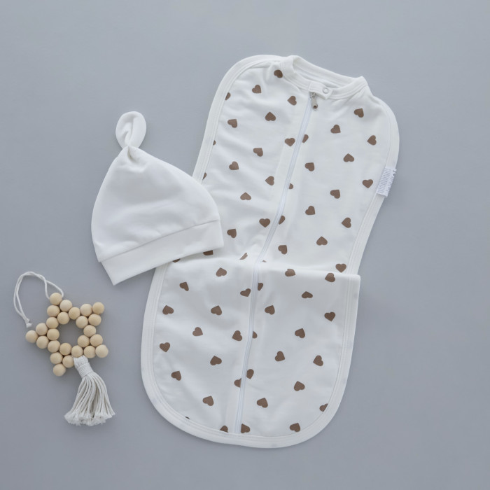 Коконпелюшка на змійці з шапочкою Сердечка Бежевий (Футер - з начосом) 62 (0-3міс)