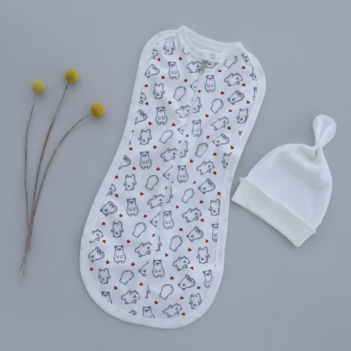 Коконпелюшка на змійці з шапочкою Ведмедик Сердечка (Інтерлок) 56 (0-1міс)