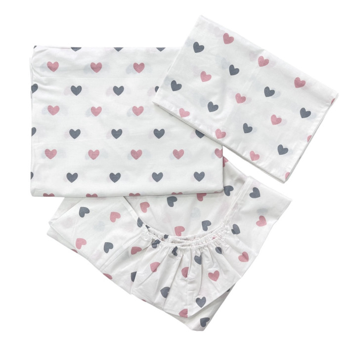 Комплект постільної білизни Сердечка Рожевий (підковдра 140*110, наволочка 40*60, простинка 120*60)