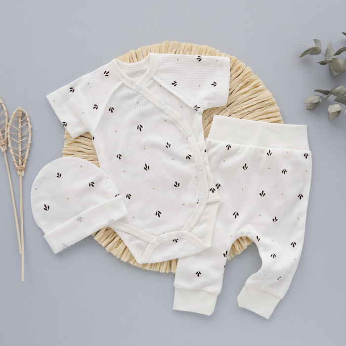 Набір 3в1: Боді короткий рукав, штанці та шапочка Гілочки (Рубчик) 56 (0-3міс)