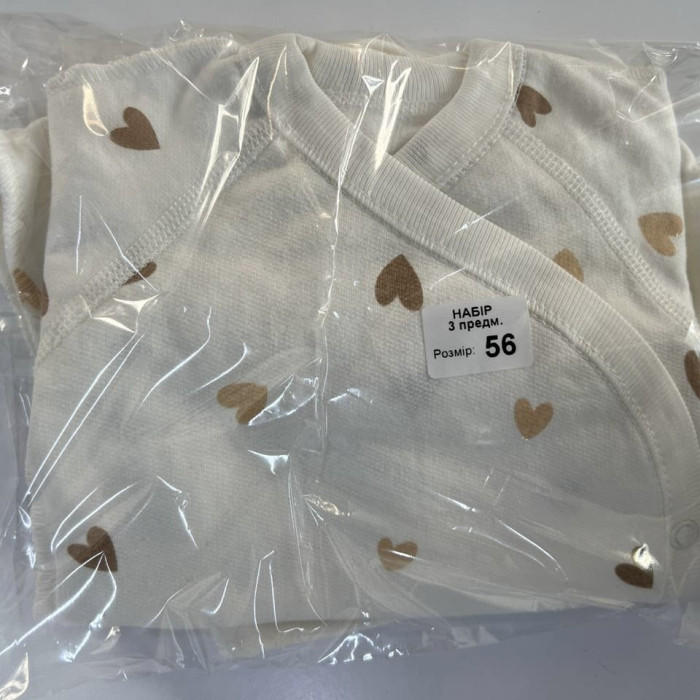 Набір 3в1: Боді, повзунки та шапочка Сердечка Бежевий (Футер- з начосом) 56 (0-3міс)