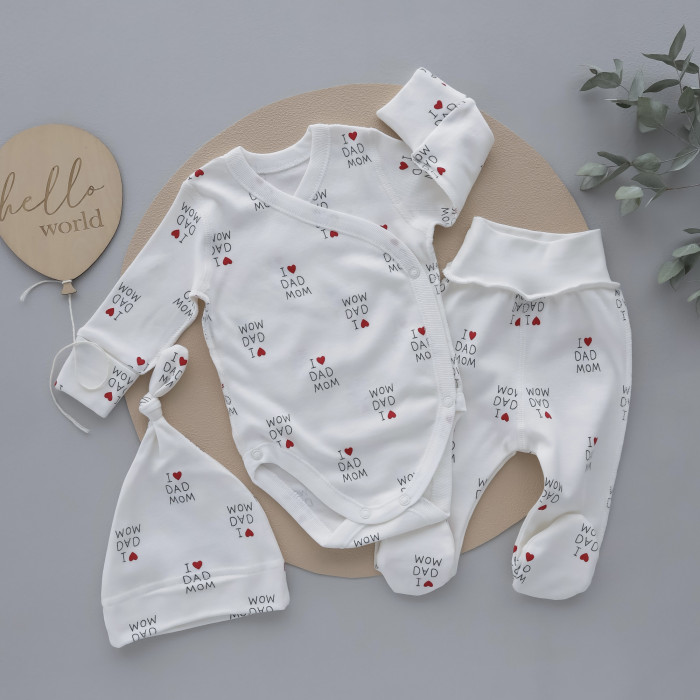 Набір 3в1: Боді, повзунки та шапочка вузлик Мама тато (Інтерлок) 62 (3-6міс)