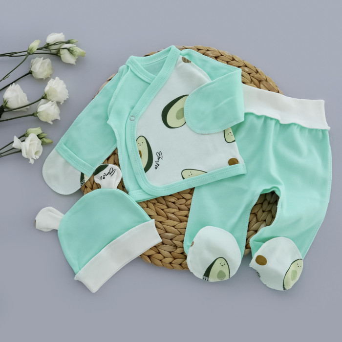 Набір 3в1: Льоля, повзунки, шапочка Авокадо Мʼятний (Інтерлок) 56 (0-3міс)