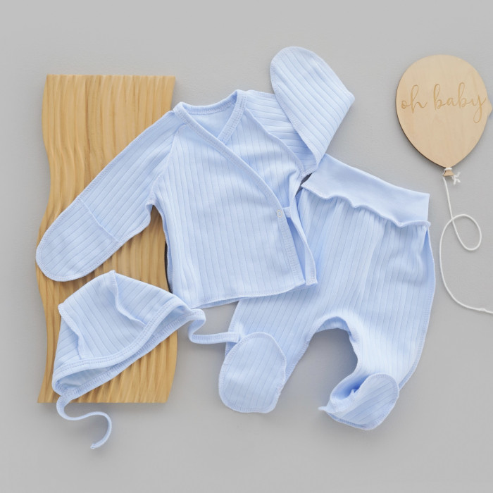 Набір 3в1: Льоля, повзунки та шапочка на зав’язках Блакитний (Рубчик) 56 (0-1міс)