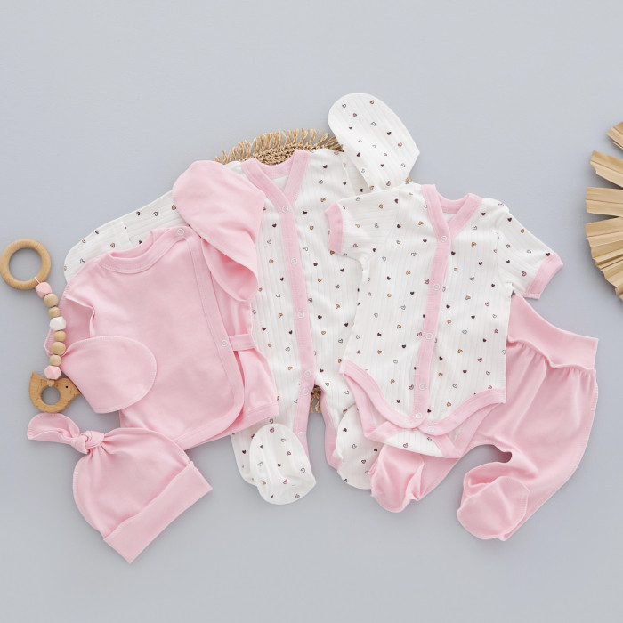 Набір 5в1 Сердечка дрібні Фіолетово-Рожевий Вузлик (Інтерлок/ Рубчик) 56 (0-3міс)