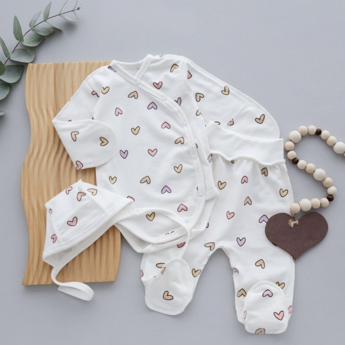 Набір 3в1: Боді, повзунки та шапочка Сердечка Фіолетовий (Футер - з начосом) 62 (1-3міс)