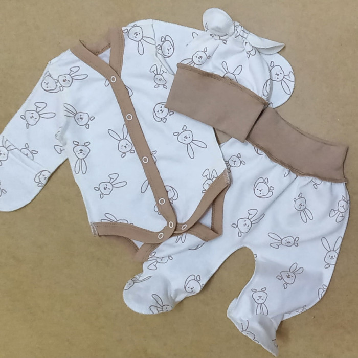 Набір 3в1: Боді, повзунки та шапочка Зайка Бежевий (Футер - з начосом) 56 (0-3міс)