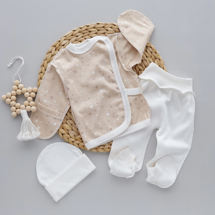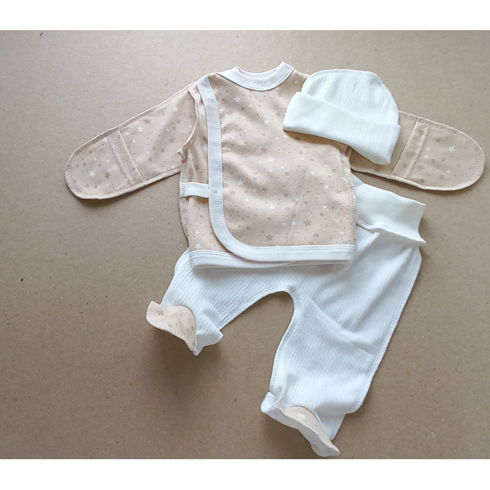 Набір 3в1: Льоля, повзунки та шапочка Зірки Бежевий (Інтерлок/ Рубчик) 56 (0-3міс)