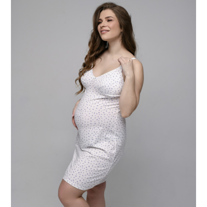 Нічна сорочка для вагітних та годуючих Листики Молочний XL (ОГ 105-110, ОС 110-115)