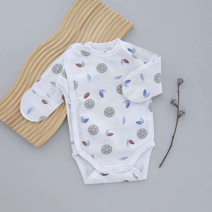 Боді довгий рукав Листики (Футер - з начосом) 56 (0-3міс)