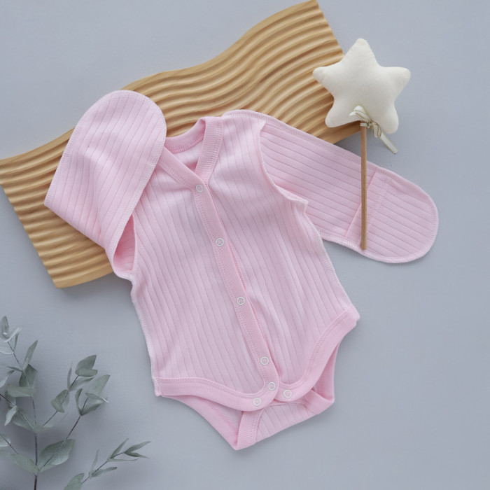 Боді довгий рукав Рожевий (Рубчик) 56 (0-3міс)