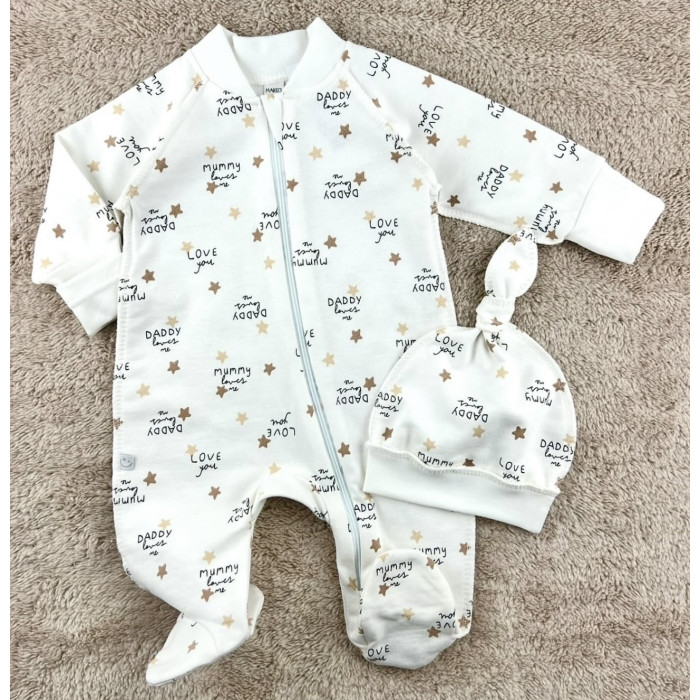 Чоловічок на блискавці та шапочка Кохаю Mummy (Футер - з начосом) 56 (0-3міс)
