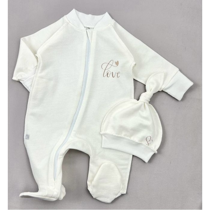 Чоловічок на блискавці та шапочка Love Молочний (Футер - з начосом) 62 (3-6міс)