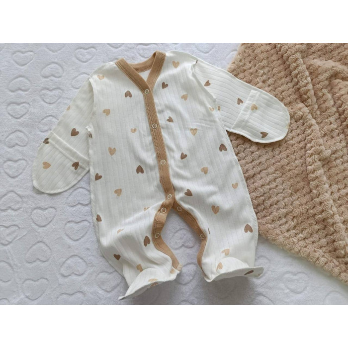 Чоловічок Сердечки Бежевий (Рубчик) 56 (0-3міс)