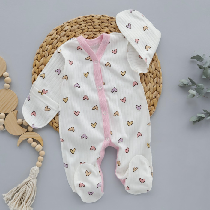 Чоловічок Сердечки Рожевий (Рубчик) 56 (0-3міс)