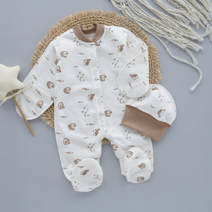 Чоловічок та шапочка Їжачки Бежевий (Футер - з начосом) 56 (0-3міс)