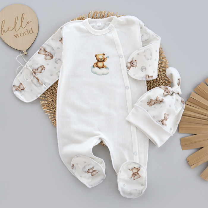 Чоловічок та шапочка Ведмедик на хмаринці (Футер - з начосом) 56 (0-3міс)