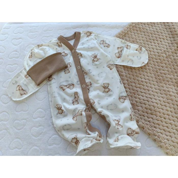 Чоловічок та шапочка Ведмедик на хмаринці Коричневий (Інтерлок) 56 (0-3міс)