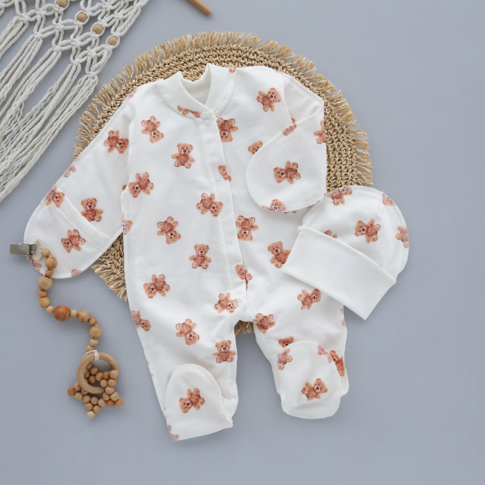 Чоловічок та шапочка Ведмедик плюшевий (Футер - з начосом) 56 (0-3міс)