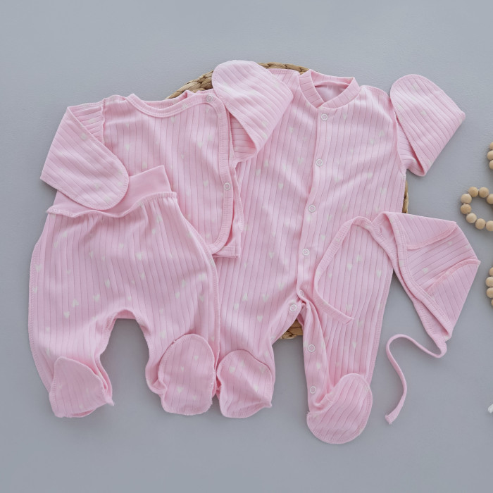 Комплект 4в1 Сердечка на рожевому (Рубчик) 56 (0-3міс)