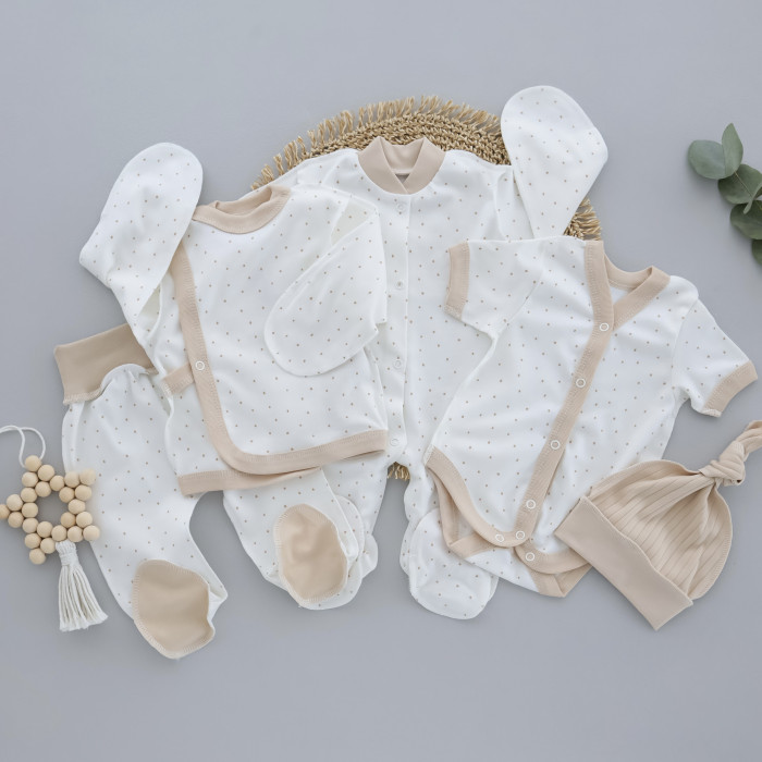 Комплект 5в1 Горошок Бежевий (Інтерлок/ Рубчик) 56 (0-3міс)