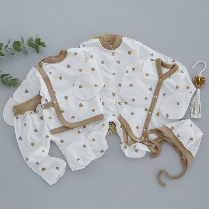 Комплект 5в1: Сердечка Бежевий (Футер - з начосом) 56 (0-3міс)
