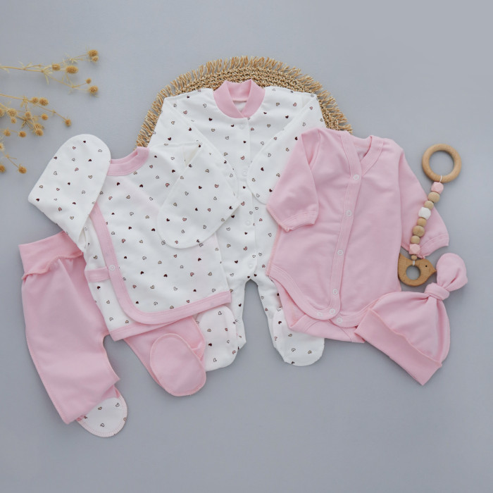 Комплект 5в1 Сердечка Рожевий Вузлик (Футер - з начосом) 56 (0-3міс)