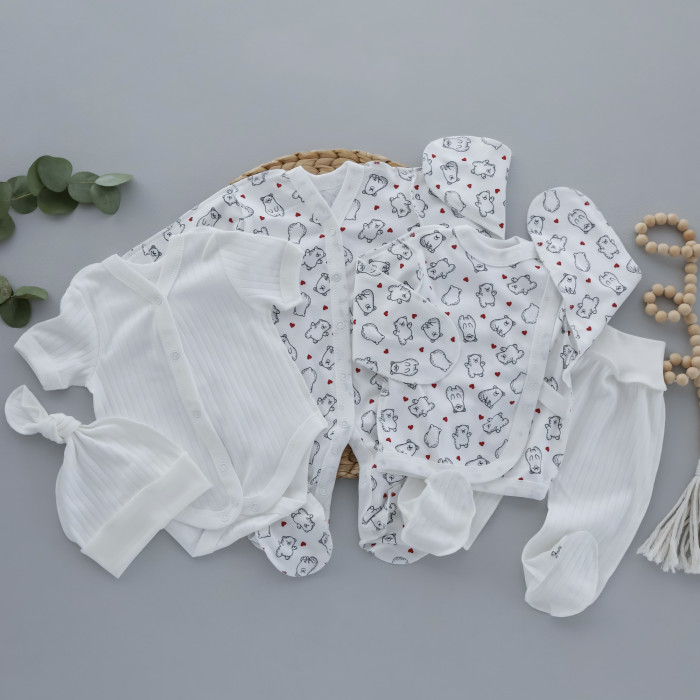 Комплект 5в1 Ведмедик з сердечками (Інтерлок/ Рубчик) 56 (0-3міс)