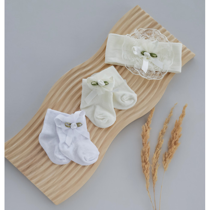 Комплект: Шкарпетки 2 пари та повʼязка Молочний 56 (0-3міс)