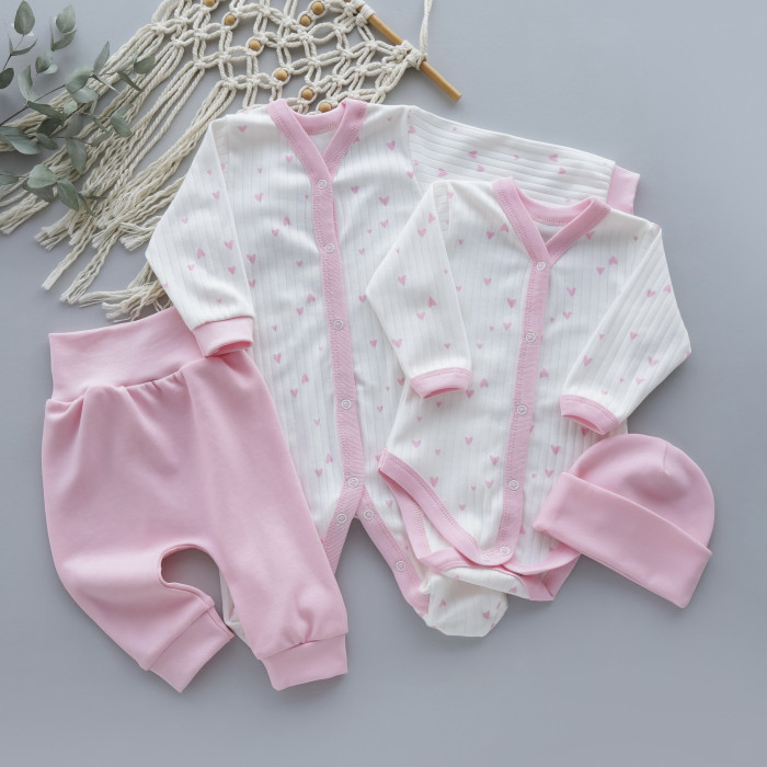 Комплект 4в1 Сердечка Молочний (Рубчик/ Інтерлок) 62 (3-6міс)