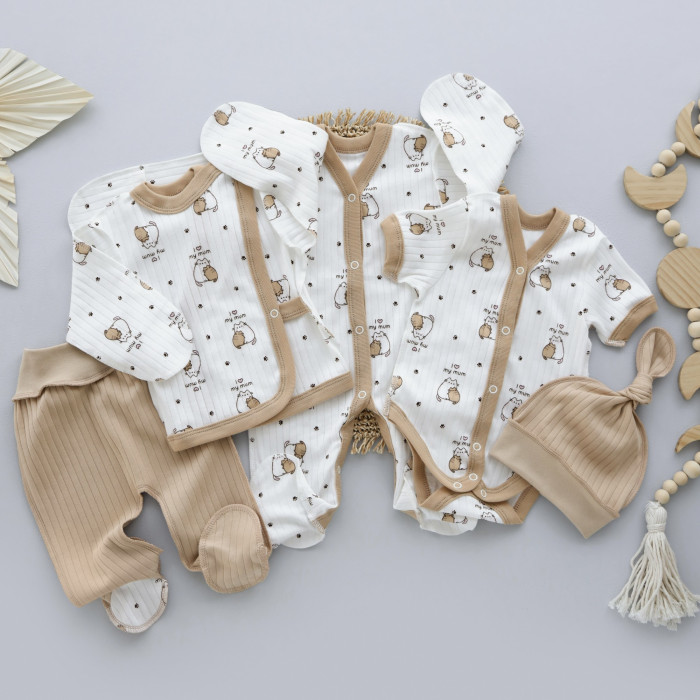 Комплект 5в1 Котики Бежевий (Рубчик) 56 (0-3міс)