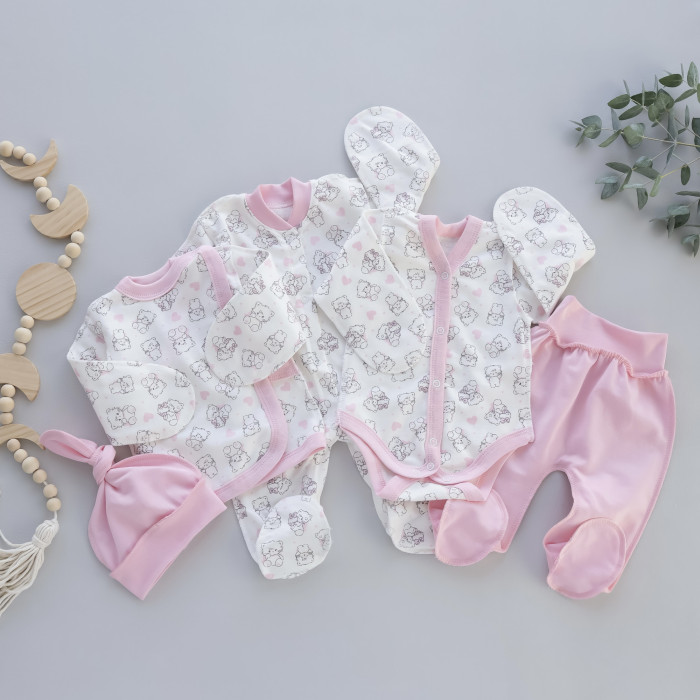 Комплект 5в1 Котики Рожевий (Футер - з начосом) 56 (0-3міс)