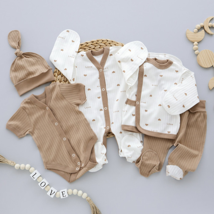 Комплект 5в1 Сердечка Бежевий Love (Рубчик) 56 (0-3міс)