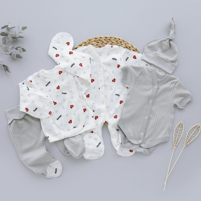 Комплект 5в1 Сердечка Червоний-Сірий (Рубчик) 56 (0-3міс)