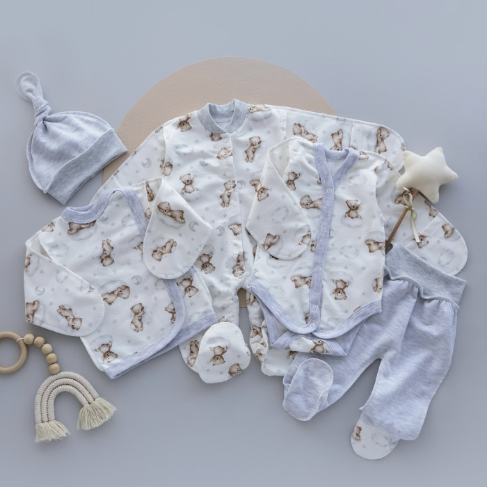 Комплект 5в1 Ведмедик на хмаринці Сірий (Футер - з начосом) 56 (0-3міс)