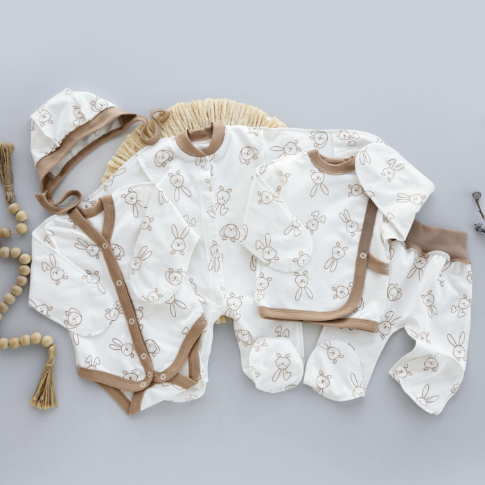 Комплект 5в1 Зайчики Бежевий (Футер - з начосом) 56 (0-3міс)