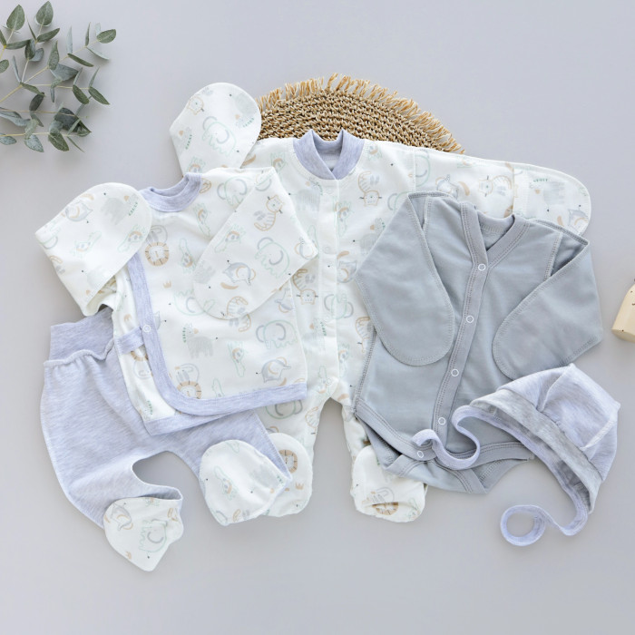 Комплект 5в1 Звірята Сірий (Футер - з начосом) 56 (0-3міс)