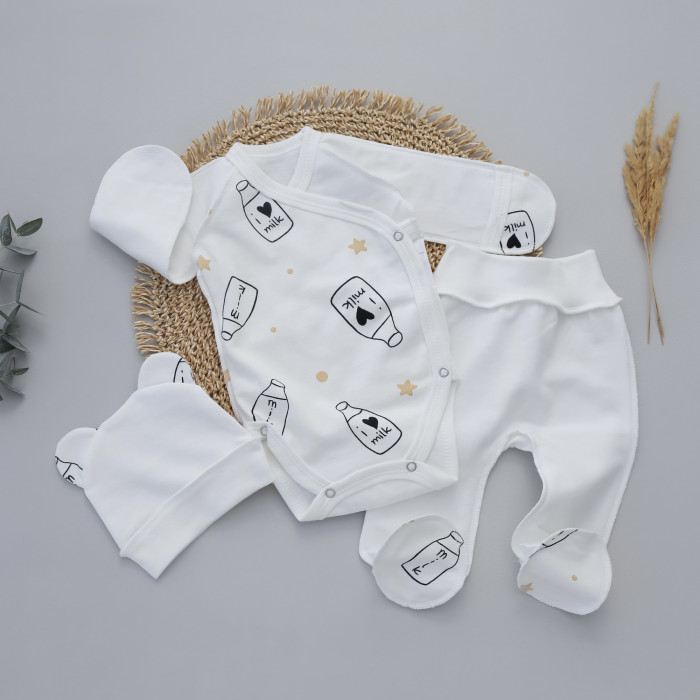 Набір 3в1: Боді, повзунки та шапочка I Мілк (Футер - з начосом) 56 (0-3міс)