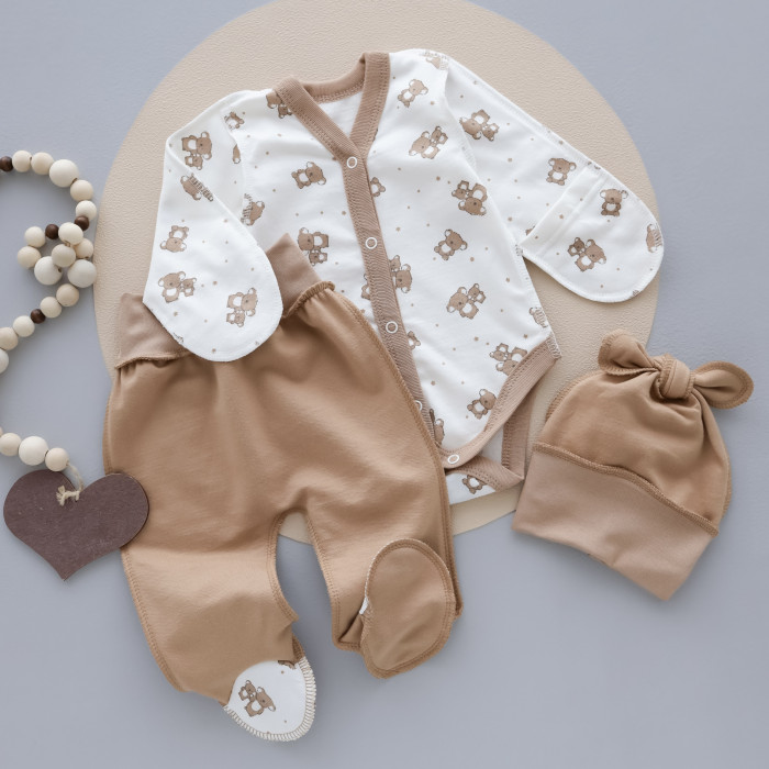 Набір 3в1: Боді, повзунки та шапочка Коали Бежевий (Футер - з начосом) 56 (0-3міс)
