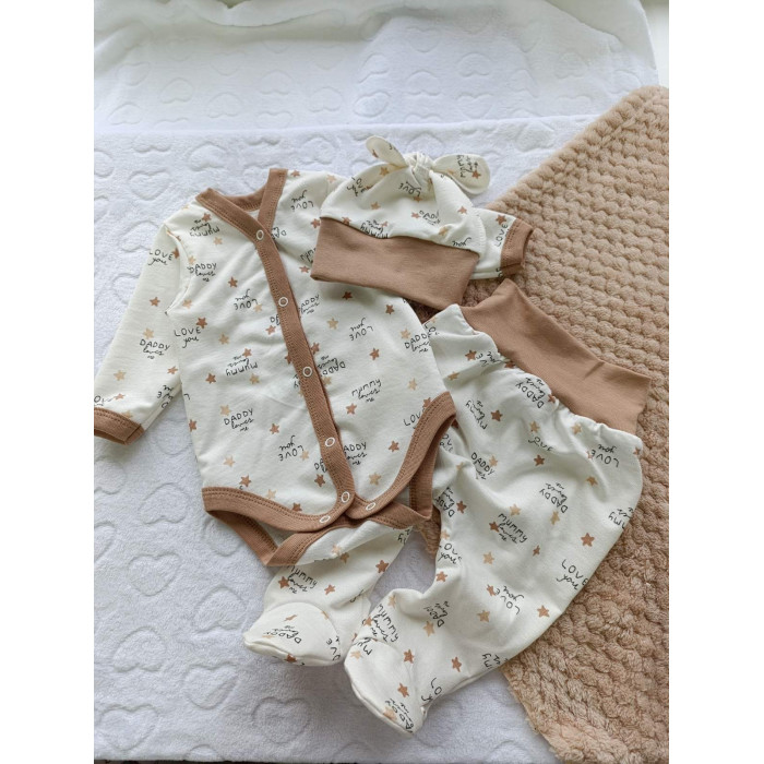 Набір 3в1: Боді, повзунки та шапочка Кохаю Бежевий (Футер - з начосом) 62 (3-6міс)