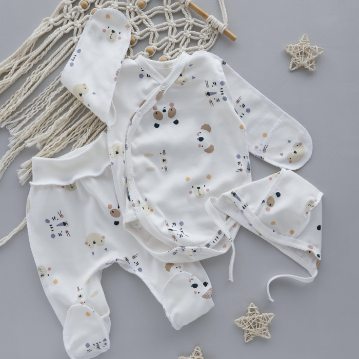 Набір 3в1: Боді, повзунки та шапочка на зав’язках Ведмедики Мордочки (Інтерлок) 56 (0-1міс)